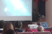 Сегодня в День космонавтики на общешкольном классном часе учащиеся посмотрели видеофильм о первых космонавтах, а затем разделившись на команды закрепили свои знания о космонавтике на игре - викторине.