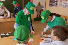 Во второй день Недели психологии активисты школы учили младших школьников делать поделки в технике оригами из бумаги