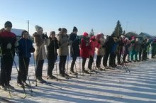 Сегодня весь коллектив школы встали на лыжи и прошлись по "Лыжне - 2016"