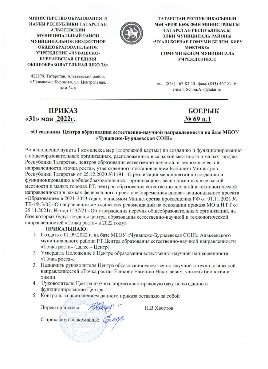 Положение о Центре образования естественно-научной и технологической направленностей «Точка роста»