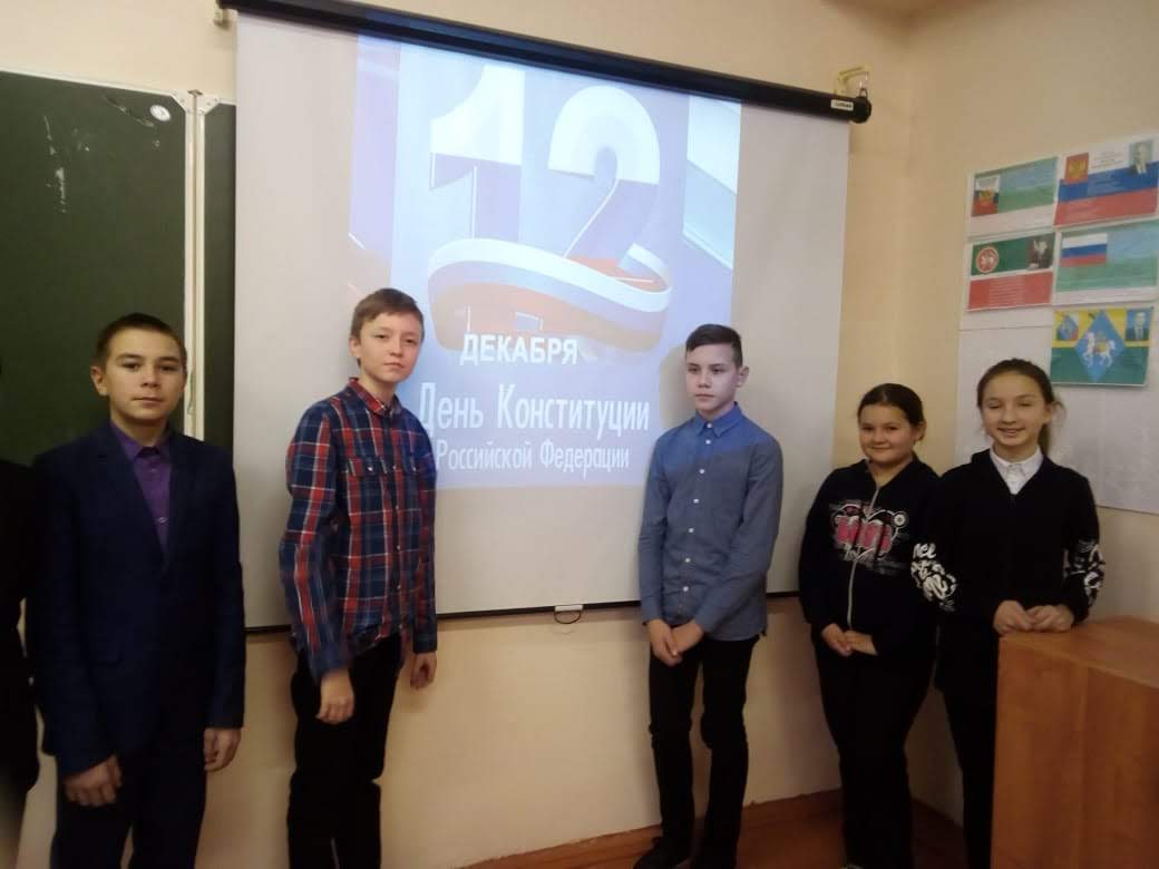 12 декабря в МБОУ «Чувашско-Бурнаевская СОШ» прошли классные часы, посвященные "Дню конституции". Ребята подготовили сообщения своих одноклассников по данной теме. После теоретической части все отвечали на вопросы викторины. В начале мероприятия звучал гимн России.