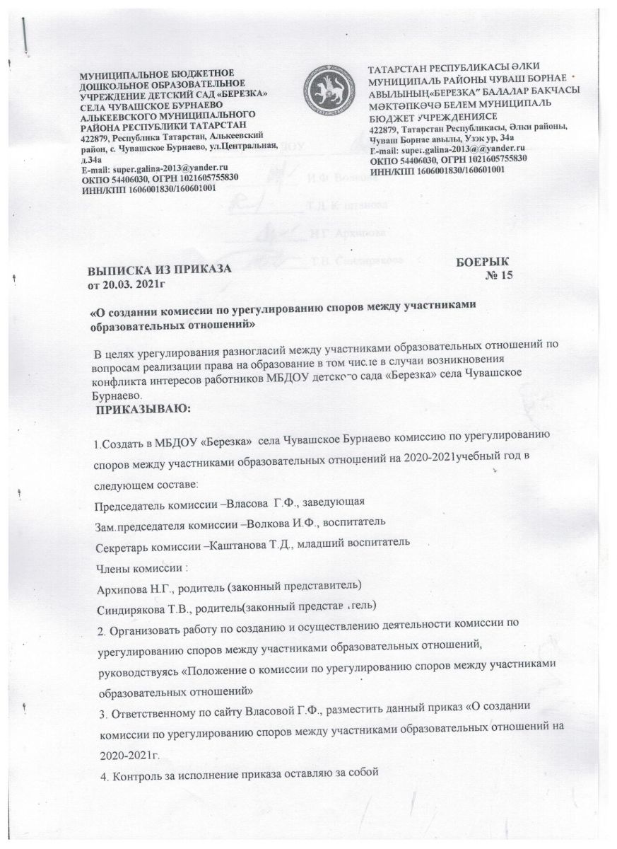Приказ "Осоздании комиссии по урегулированию споров между участниками образовательных отношений"