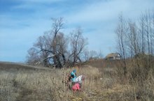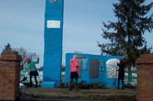 Уборка на территории памятника землякам, погибшим в Великой Отечественной Войне 10.04.2015