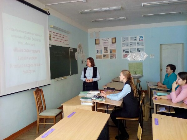 Педагог - организатор Варламова Е. В. с учащимися 5-6 классов провела мероприятие, направленное на освещение подвига военнослужащих 6 роты 2-го батальона 104 гвардейского парашютно-десантного полка гвардейской воздушно-десантной дивизии, погибших при исполнении воинского долга.