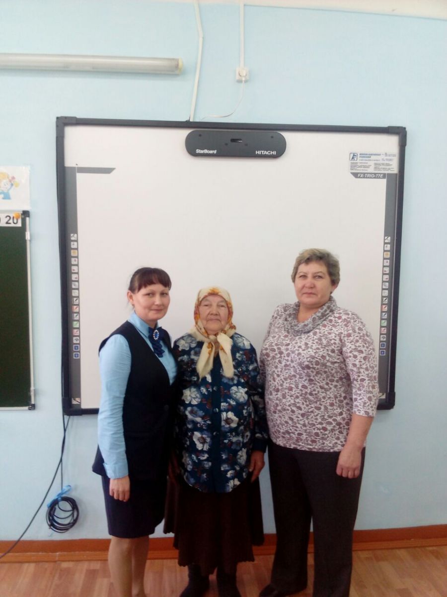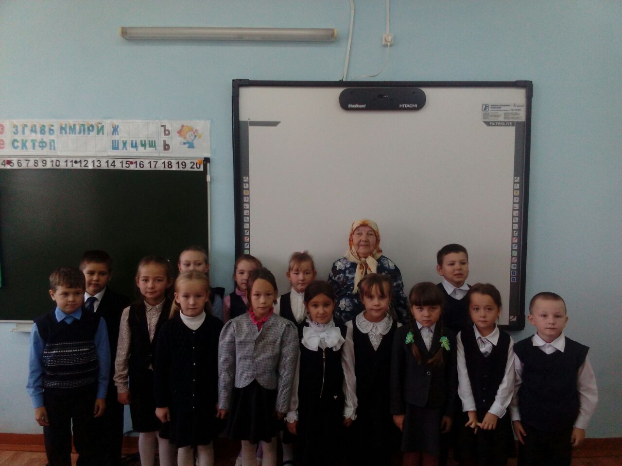 Учитель начальных классов Варламова Е.В. провела с первым классом классный час по теме: "Живое слово ветерана". На классный час была приглашена вдова ветерана Великой Отечественной войны Скрипачева Анастасия Никифоровна. Она рассказала о тяжелой жизни во время войны.