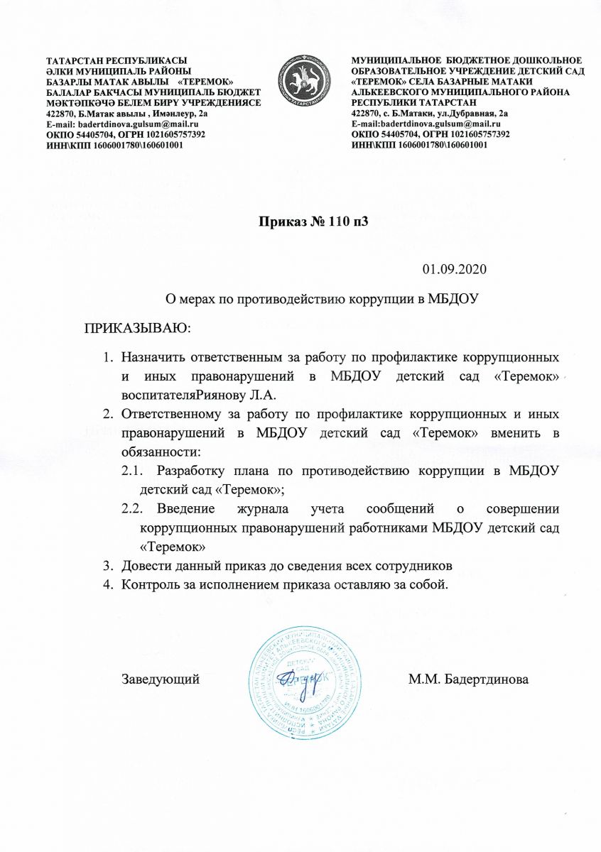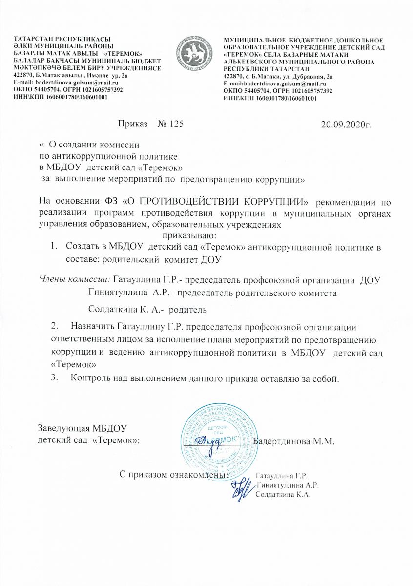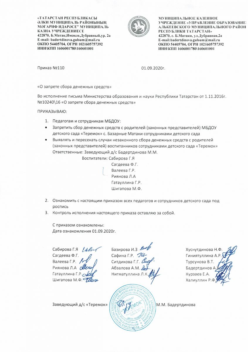 Муниципальное бюджетное дошкольное образовательное учреждение детский сад "Теремок" с.Баз.Матаки Алькеевского муниципального района Республики Татарстан