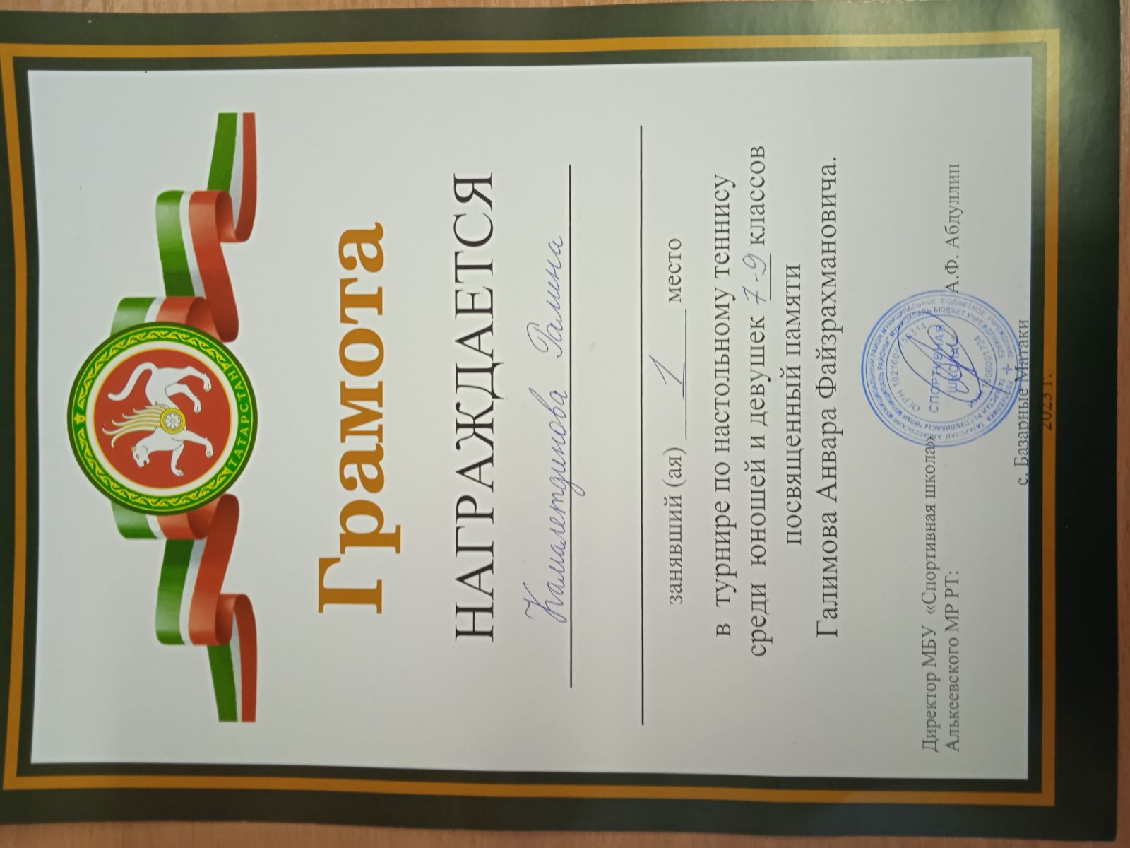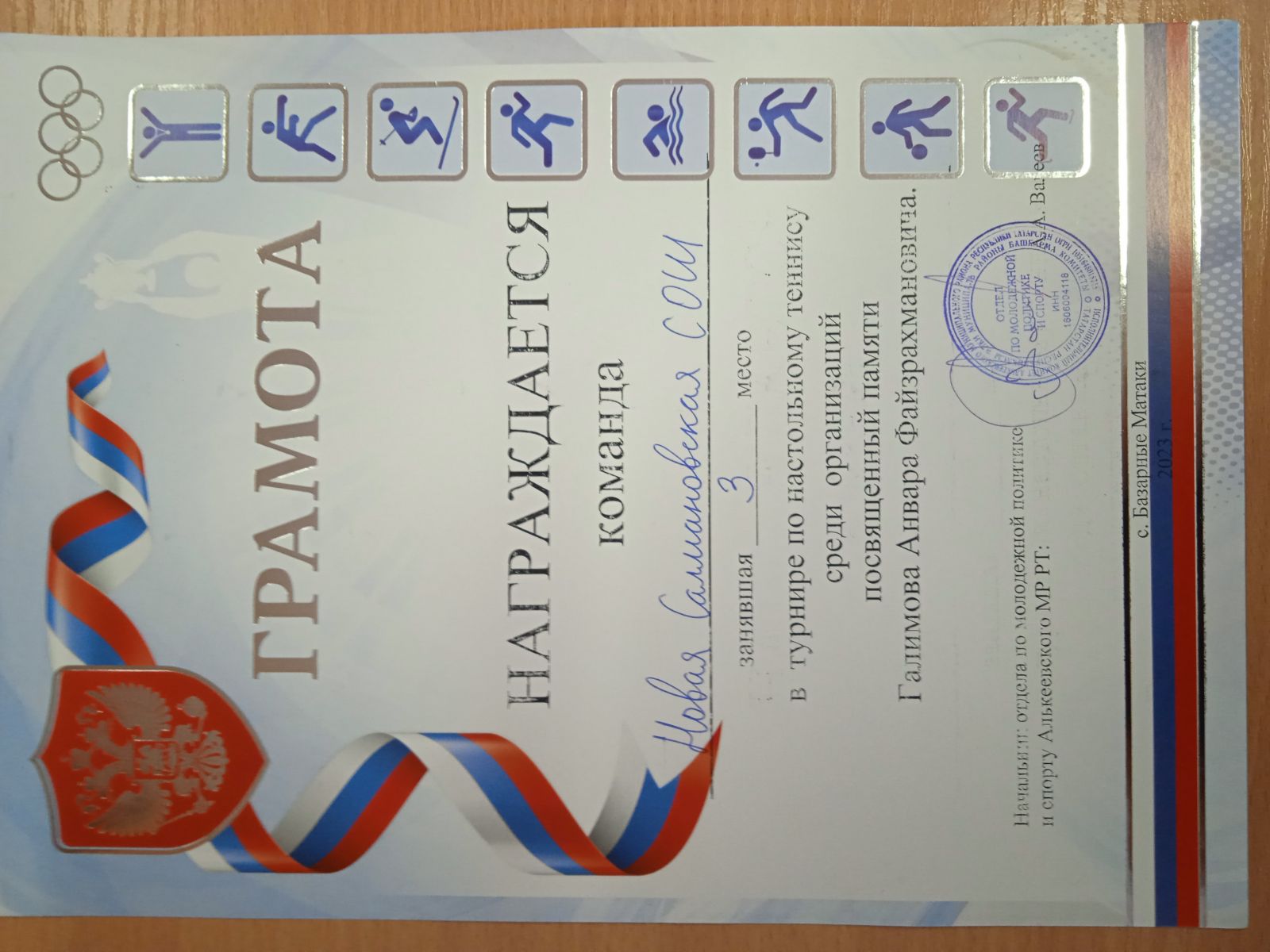14 января 2023 г в спортивном комплексе "Алина" состоялись спортивные состязания по настольному теннису, посвященный памяти Галимова Анвара Файзрахмановича. Учащиеся нашей школы приняли участие в этих соревнованиях. В турнире среди юношей и девушек 7-9 класов Камалетдинова Ралина заняла 1 место, среди юношей 10-11 классов Сафин Данис занял 2 место, общекомендное -3 место. Учащихся по настольному теннису подготовил учитель физической культуры Сафиуллин Ахмет Загидуллович. Поздравляем всю команду!
