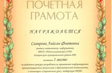 С целью выявления и поощрения педагогов, которые занимаются освоением и применением ИКТ в педагогической практике, активным поиском педагогических методов, средств и форм обучения, соответствующих современному уровню развития информационно-коммуникационных технологий в марте был проведен муниципальный конкурс разработок по применению ИКТ в образовательной деятельности. Всего на конкурс по разным номинациям были представлены 42 работы. По итогам конкурса, в номинации «Современный урок с поддержкой ИКТ» победительницей признана – учительница математики, информатики Сагирова Л.Ф. Поздравляем и желаем ей дальнейших творческих успехов!!!