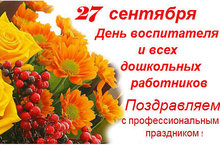 Сегодня, в день всех дошкольных работников, мы поздравляем всех сотрудников детского сада. Все вы: и воспитатель, и помощник воспитателя, и повар и все остальные – трудитесь на благо нашего подрастающего поколения. Все мы вносим неоценимый вклад в воспитание подрастающего поколения, даем им возможность вырасти умными, способными, здоровыми, физически развитыми людьми. Всем, кто связан с детским садом, хочется пожелать любви к детям, терпения, стремления в работе. Желаем Вам всего самого лучшего: крепкого здоровья, счастья, везения, семейного благополучия!
