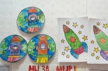 Была оформлена тематическая выставка космических рисунков. Воспитанники со своими родителями нарисовали замечательные рисунки. Чего среди них только нет: и ракеты, и планеты Солнечной системы, и многое другое. Работы получились яркие, оригинальные и красочные. Теперь у некоторых ребят появилась мечта — полететь в космос. Кто знает, быть может, когда-то, для кого-то из них это станет явью.
