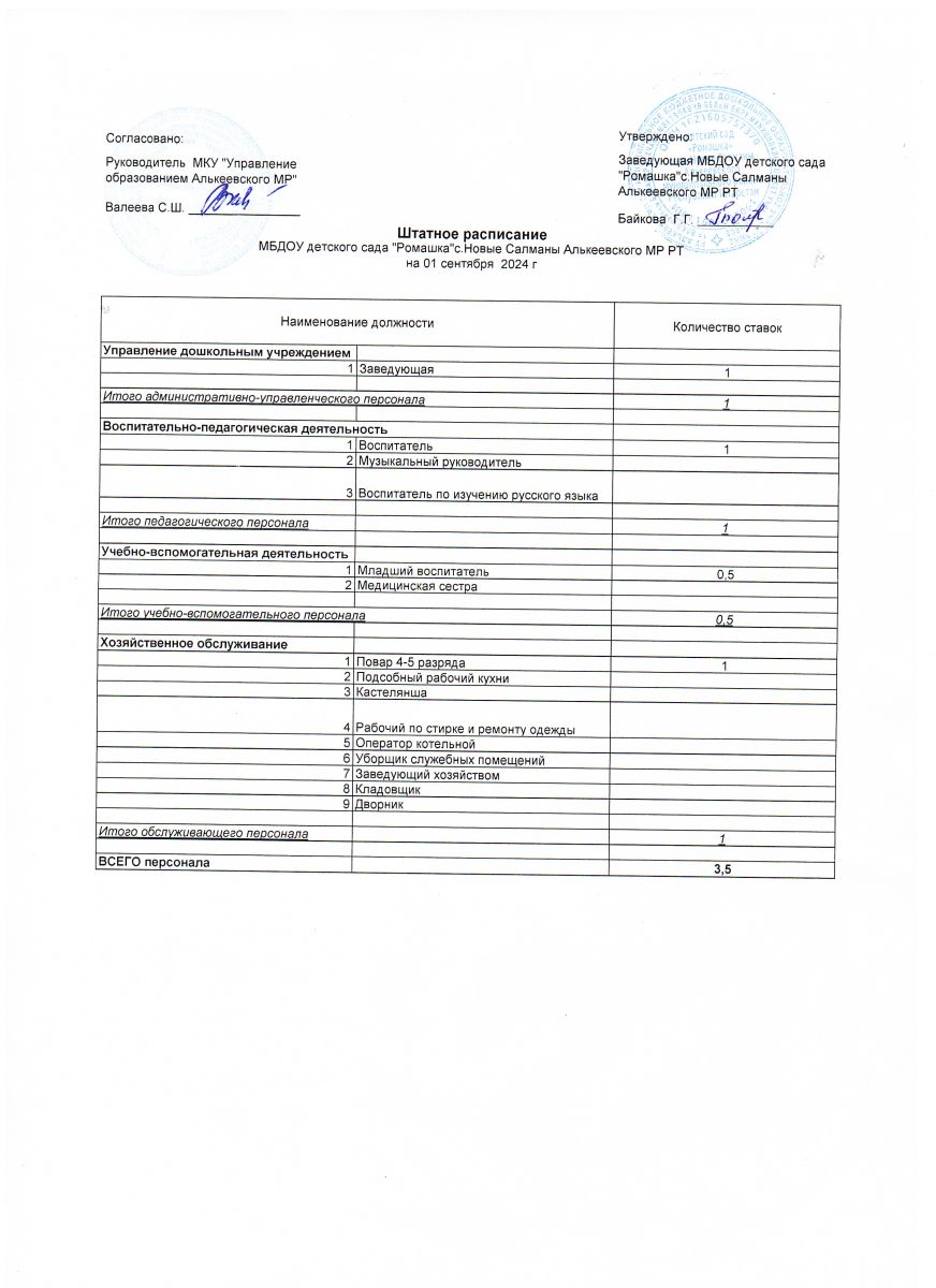 Короткое название: МБДОУ д/с "Ромашка" с.Новые Салманы Алькеевского МР РТ