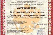 28 февраля 2015 года учащиеся музыкальной школы Реана Агапова, Арина Хайрутдинова, Рената Гарифуллина, Дарья Борисова и Кристина Меликян участвовали в VIII республиканском фестивале-конкурсе «Камская мозаика» в городе Чистополе и были награждены дипломами за яркое исполнение музыкальных произведений. Девочки учатся в классе фортепиано у преподавателей Г. Р. Арслановой и В.С. Кирсановой.