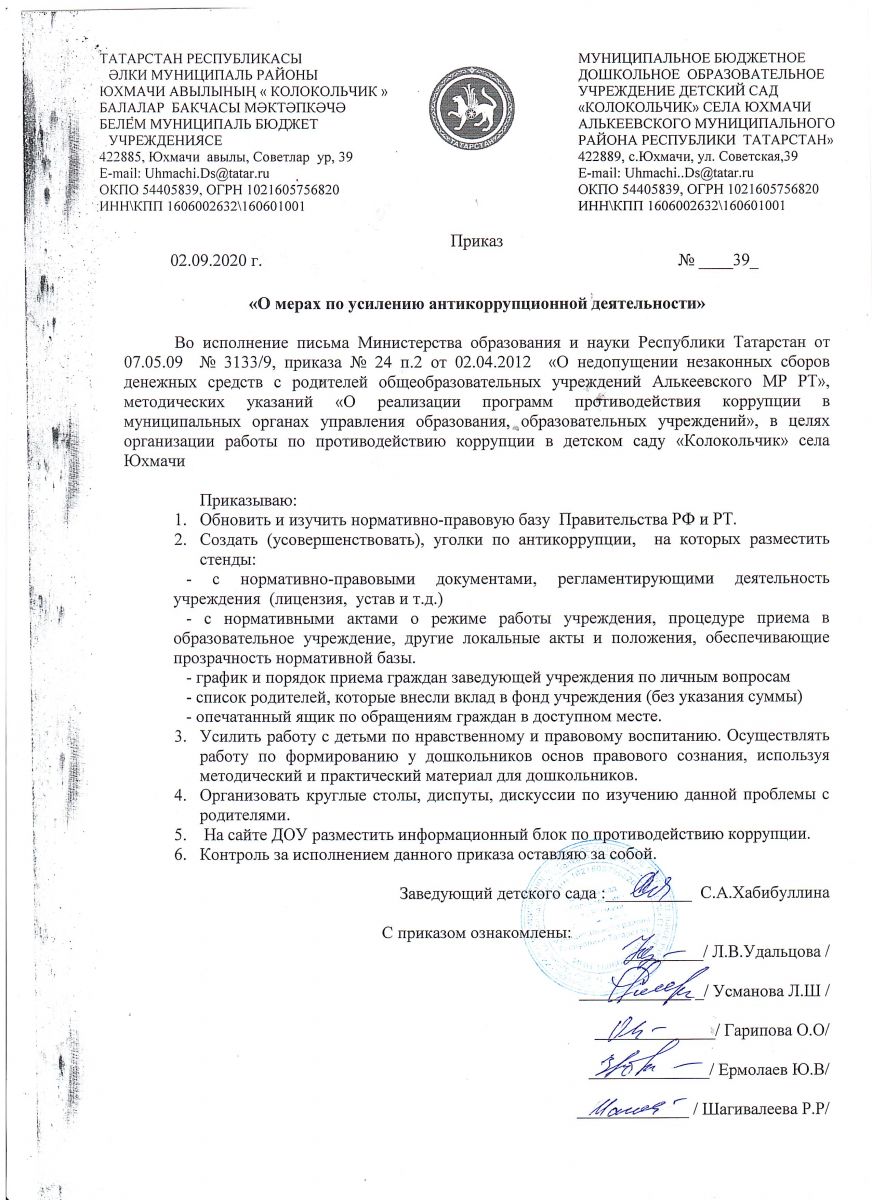 Приказ "О мерах по усилению антикоррупционной деятельности"