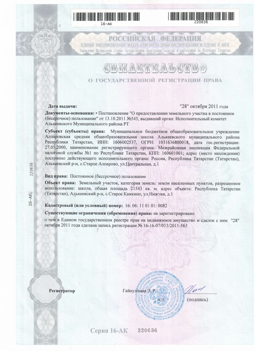 | Короткое название: | МБОУ Алпаровская СОШ |