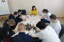 Сотрудники Дома детского творчества на постоянной основе оказывают помощь солдатам, участвующим в специальной военной операции на Украине. Очередное рабочее место по плетению маскировочных сетей оборудовано в фойе Дома детского творчества. -