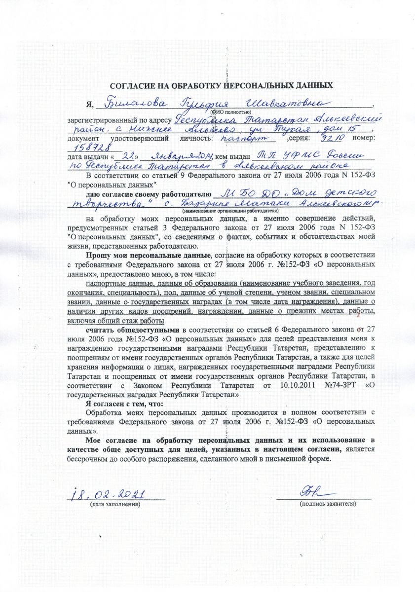 Согласие на обработку персональных данных