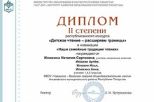 «Балалар укуы - чикләрне киңәйтәбез» республика конкурсында 2 нче урын алган Чуаш Кичүе урта мәктәбенең башлангыч сыйныфлар укытучысы Илюхина Наталия Сергеевнаны котлыйбыз. Педагог балалары белән бергә "уку-белемнәрне саклау» номинациясендә иң яхшы эш әзерләде һәм 2 нче урынны алды.