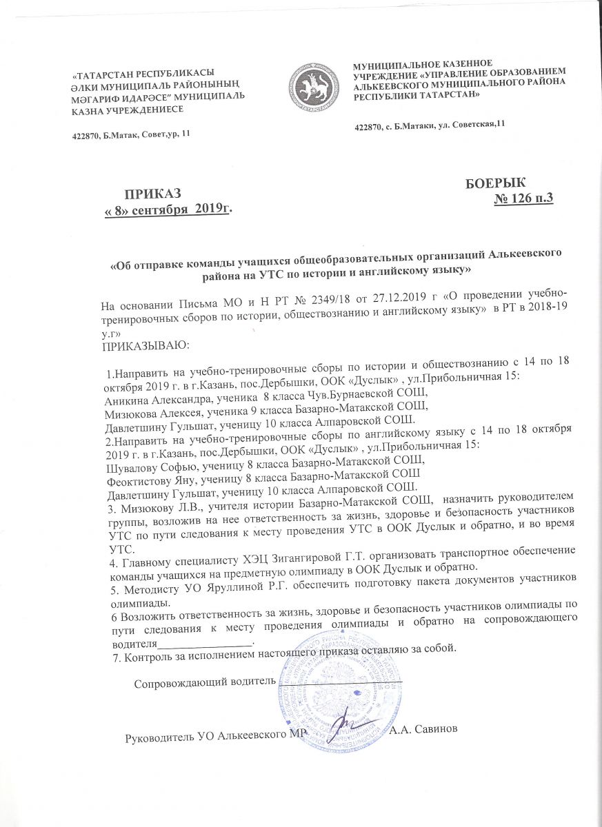 Приказ УО об отправке детей на УТС по английскому языку