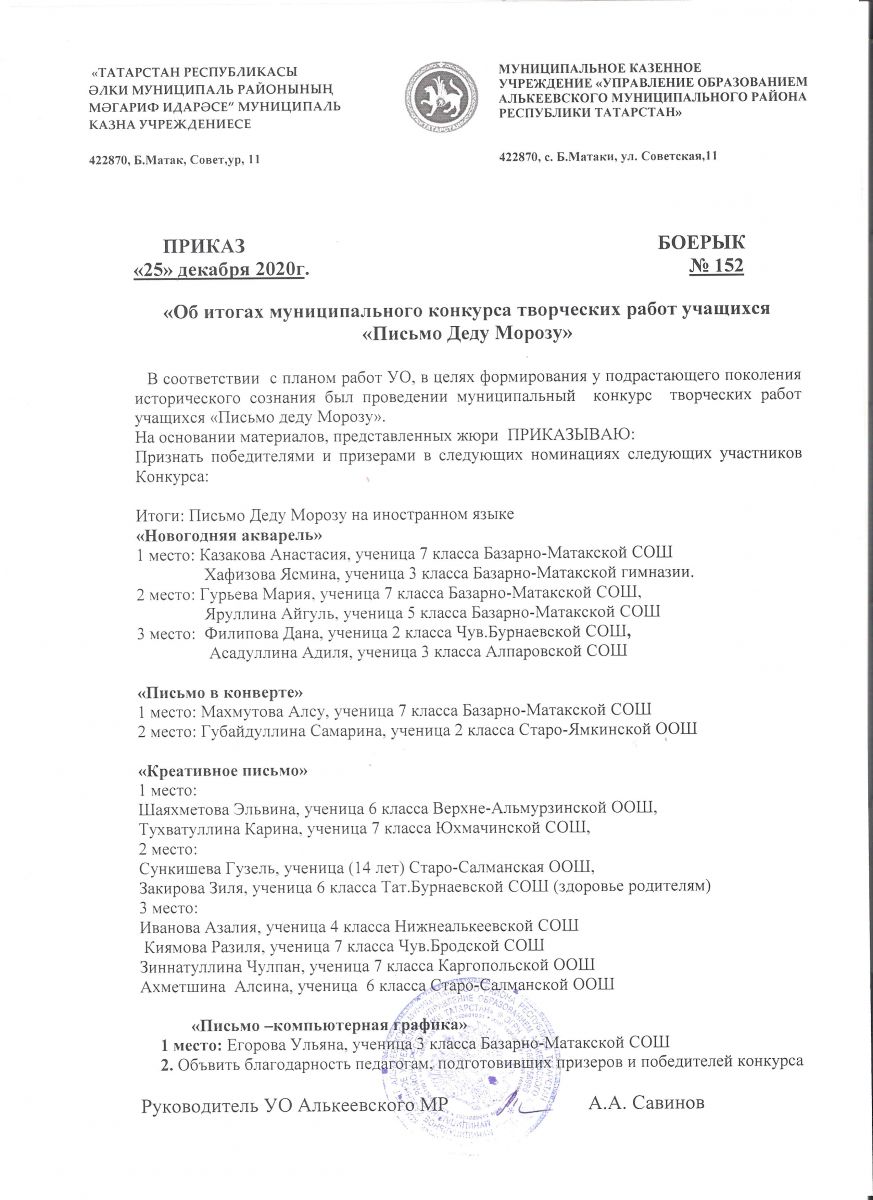 Приказ итог конкурса "Письмо деду морозу"