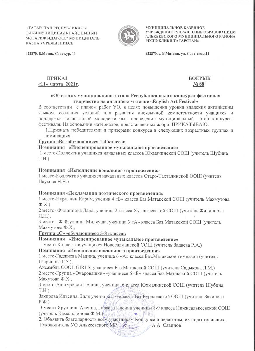 Приказ о проведении муниципального Гала-концерта "Созвездие-Йолдызлык-2021"