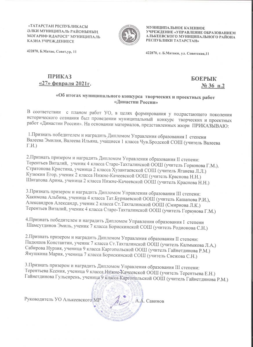 Приказ итог конкурса "Династия России"