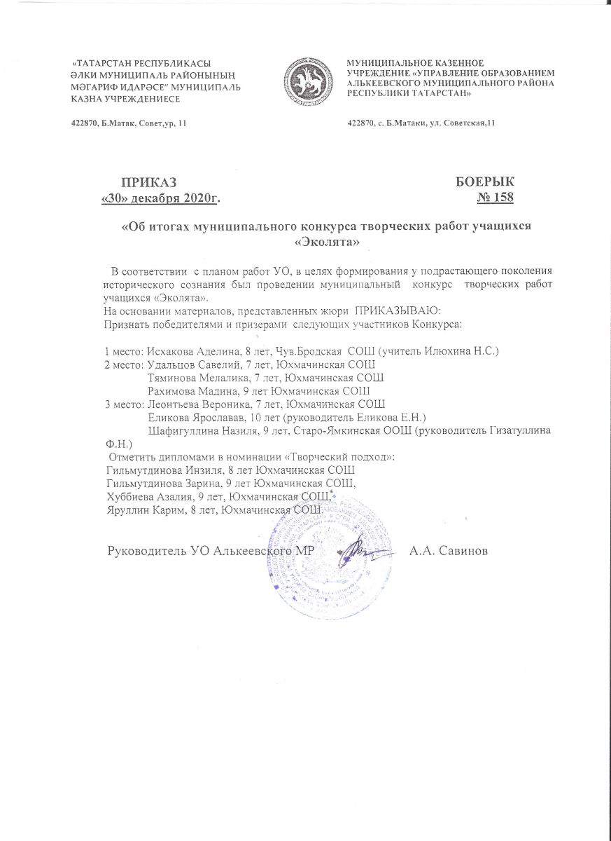 Приказ итог конкурса "Эколято"