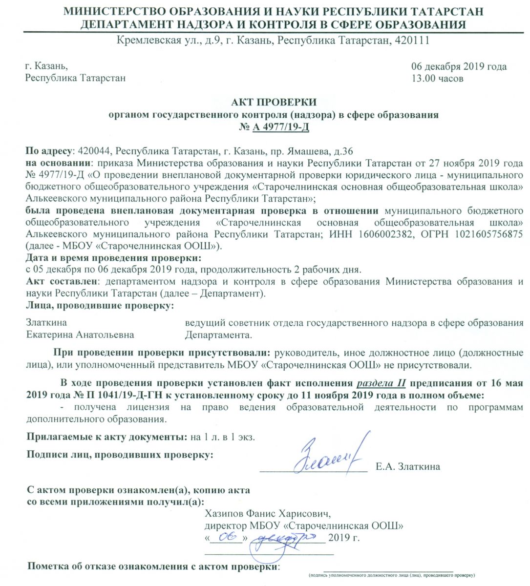 Акт проверки лицензирующим органом №А 3059/19-Д