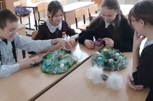Сегодня девочки 7 класса провели мастер - класс "Новогодний венок" для мальчика с ОВЗ.