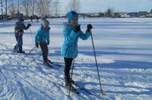На лыжне возле школы устроили катания ученики школы под руководством учителя физической культуры Матюшкина В.А.