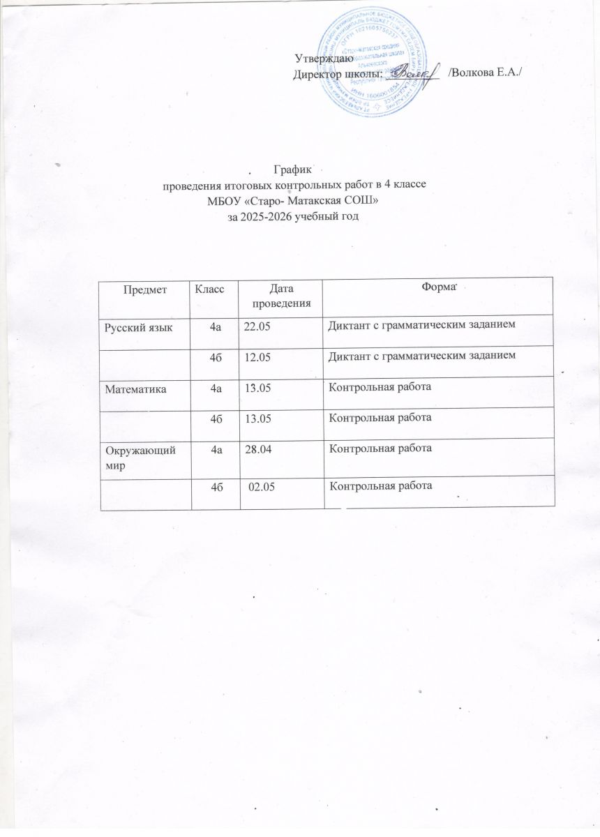 График промежуточной аттестации Старо-Матакской СОШ