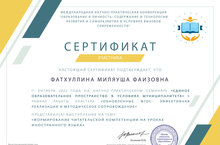 11 октября педагоги нашей школы Фатхуллина М. Ф.и Хайбуллина Г. К. приняли участие в научно-практическом семинаре «Единое образовательное пространство в условиях муниципалитета». Данное мероприятие было организовано в рамках работы кластера ОБНОВЛЕННЫЕ ФГОС: ЭФФЕКТИВНАЯ РЕАЛИЗАЦИЯ И МЕТОДИЧЕСКОЕ СОПРОВОЖДЕНИЕ» в ходе Международной научно-практической конференции «ОБРАЗОВАНИЕ И ЛИЧНОСТЬ: СОДЕРЖАНИЕ И ТЕХНОЛОГИИ РАЗВИТИЯ И САМОРАЗВИТИЯ В УСЛОВИЯХ ВЫЗОВОВ СОВРЕМЕННОСТИ», совместно с Центром социально-гумманитарного образования г. Казани. Участники обсудили вопросы, связанные с обновлённым ФГОС, функциональной грамотностью, представили свой педагогический опыт.