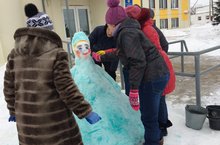 Бүген укучылар Яңа елны каршылап, мәктәп каршында кардан сыннар ясадылар