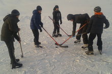 Кышкы каникулда укучылар үзләренең сәламәтлекләрен ныгыттылар.Бүген алар хоккей уйнадыдар.