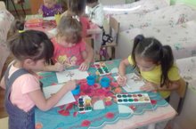 Тәрбияче балаларга краска белән дөрес буяу алымнарын өйрәтте.