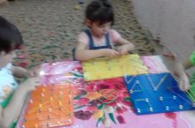 Торле тосле резинкалар ярдэмендэ геометрик фигуралар ясарга яраталар.