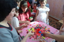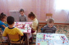 Аппликация шогылендә балалар очкыч ябыштырдылар