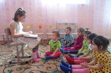 Эльвина тәрбияче ролендә. Ул балаларга әкиятләр сөйли, ә инде балалар игътибар белән тыңлыйлар.