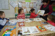 Тәрбияче балаларны китапханәгә сәламәтлек