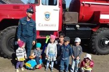 В гостях у детей детского сада «Ручеёк» села Старая Тахтала побывала команда пожарной части села Салманы. В дошкольное учреждение они прибыли на пожарной машине, ребята были очень рады этому неожиданному визиту.