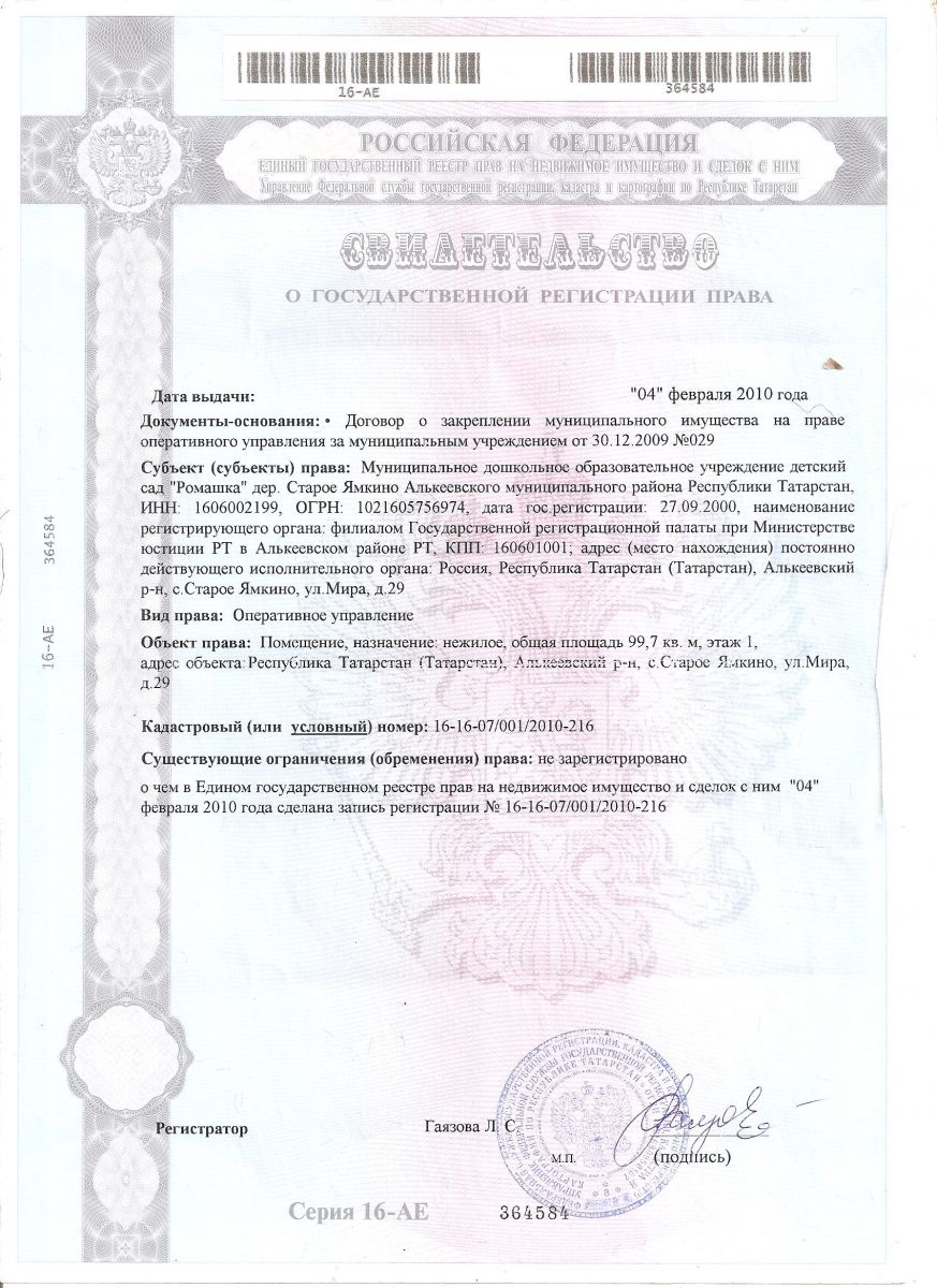 | Адрес: | 422882, Республика Татарстан, Алькеевский район, c. Старое Ямкино, ул. Мира, зд. 39 |