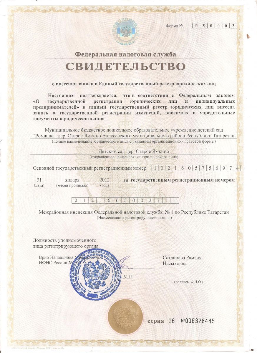 Муниципальное бюджетное дошкольное образовательное учреждение детский сад «Ромашка» дер. Старое Ямкино Алькеевского муниципального района Республики Татарстан