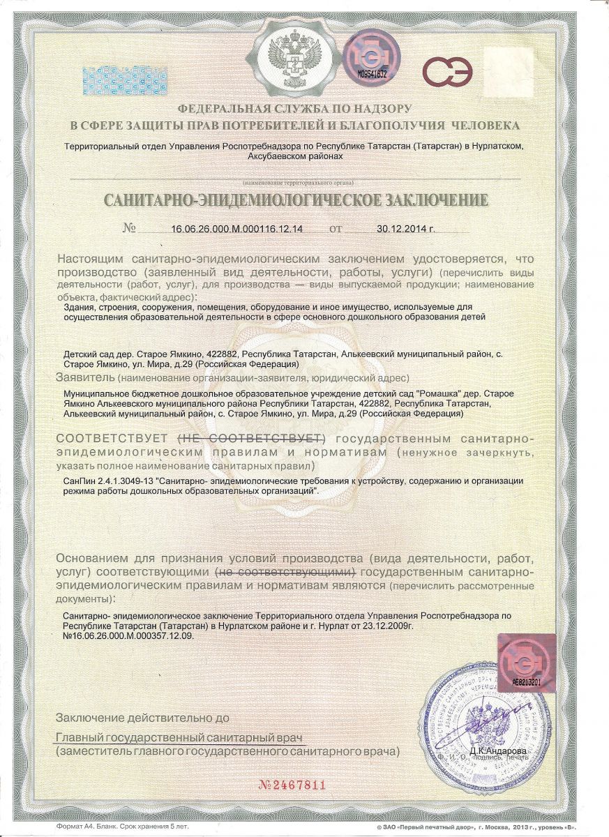 Санитарно-эпидемиологическое заключение