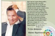 9 нчы февраль - Татарстанның халык шагыйре, Г. Тукай исемендәге Дәүләт премиясе лауреаты, Татарстан Республикасының атказанган мәдәният хезмәткәре, Халыклар дуслыгы ордены кавалеры, шагыйрь, прозаик, драматург Фәнис Яруллинның туган көне. 09.02.2021
