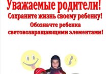 Уважаемые родители! Научите ребенка привычке соблюдать Правила дорожного движения. Побеспокойтесь о том, чтобы Ваш ребенок «засветился» на дороге. Примите меры к тому, чтобы на одежде у ребенка были светоотражающие элементы, делающие его очень заметным на дороге. Помните - в темной одежде маленького пешехода просто не видно водителю, а значит, есть опасность наезда.