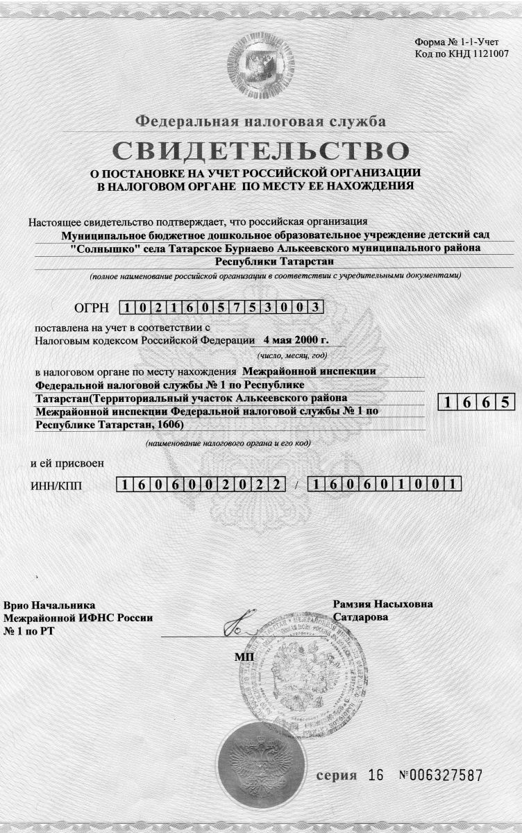 Короткое название: МБДОУ детский сад села Татарское Бурнаево