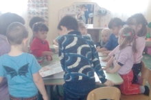 Китапханәче Абдуллина Рузалия апа балалар белән "Мин кем булырга телим" дигән темага әңгәмә үткәрә