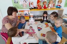 Бүген тәрбияче Гөлсинә Тауфиковна балаларны театр сәнгатенең төрләре белән таныштырды.Балалар төрле әкиятләрне,шигырьләрне искә төшерделәр .Аннары рольләргә бүлеп уйнап карадылар. -