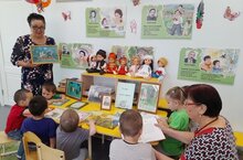Балалар авыл китапханәсендә экскурсиядә булдылар.Нәниләр китап дөньясында үзләрен бик иркен тоттылар Аларга, Гөлфәридә Имамовна иң кечкенәләр өчен нәни,матур китаплар хәзерләп куйган иде.Балаларга кызыклы әкиятләр укыды.Табышмакларга бергәләп җаваплар эзләдек.