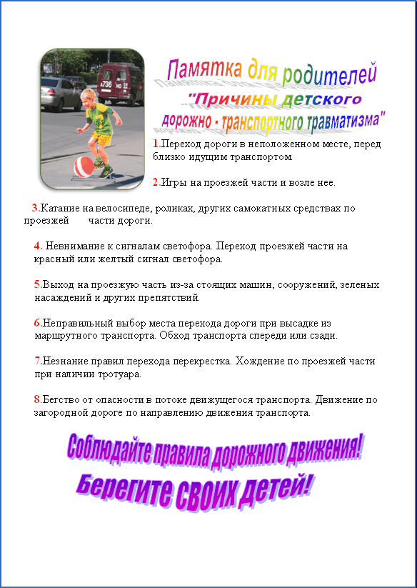 Памятка для родителей по ПДД