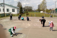 В субботу день выдался солнечный, и мы решили принять участие в конкурсе "Рисунок на асфальте", приуроченный ко дню парков и скверов. 3 команды соревновались в изображении своего парка, затем командиры защищали свой проект. Победила команда "Кырлай"
